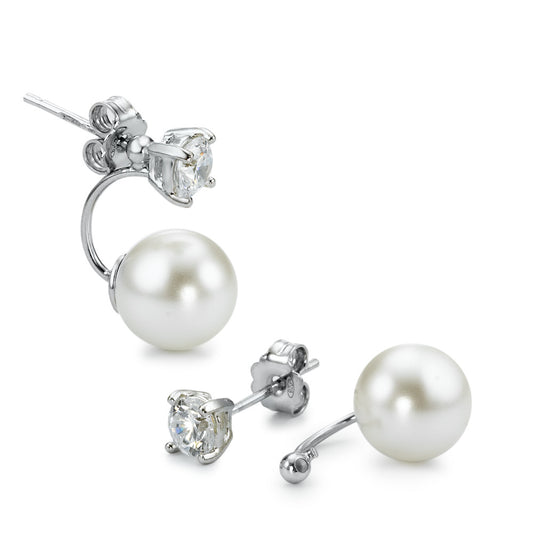 Ohrhänger Silber Zirkonia weiss, 2 Steine rhodiniert