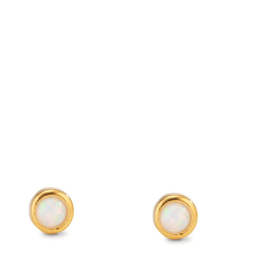 Ohrstecker Silber synth. Opal weiss, 2 Steine gelb vergoldet Ø4.5 mm