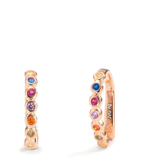 Ohrklemme Silber Zirkonia bunt, 12 Steine rosé vergoldet Ø10 mm