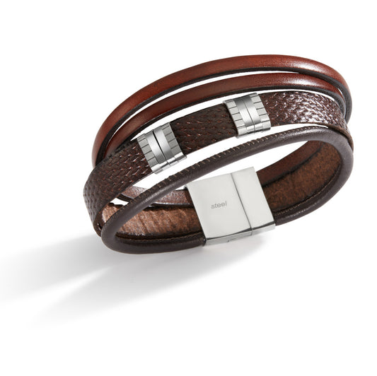 Wickelarmband Heritage Roségold aus Edelstahl, Flechtleder schwarz