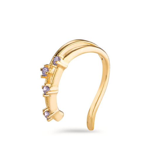Ohrklemme Silber Zirkonia lila, 4 Steine gelb vergoldet Ø10 mm