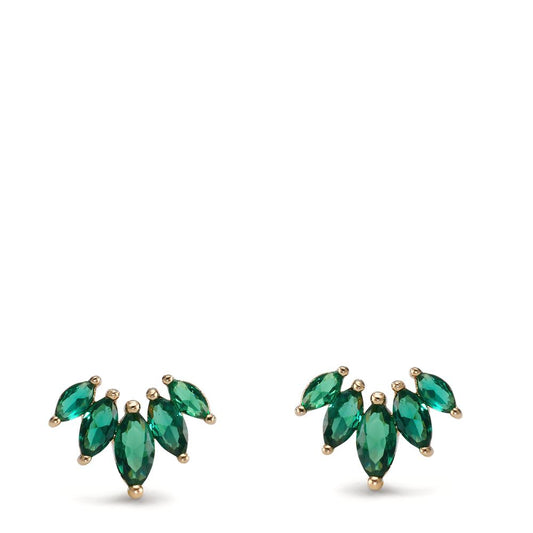 Ohrstecker Bronze Zirkonia grün, 10 Steine vergoldet