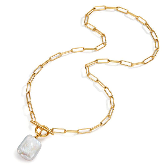 Collier Edelstahl gelb IP beschichtet Süsswasserzuchtperle weiss 45 cm