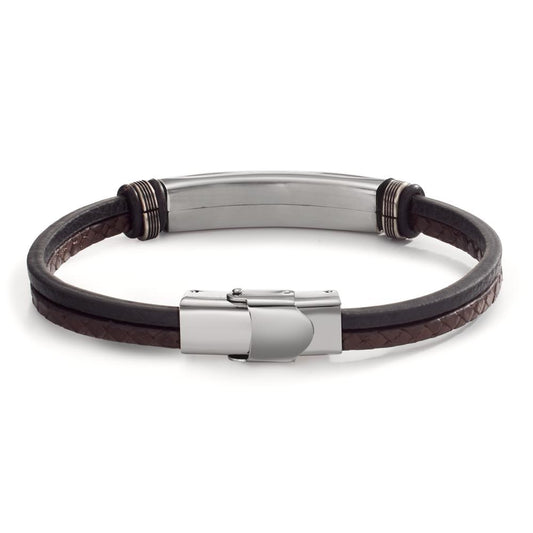 Gravurarmband Edelstahl, Leder 22 cm