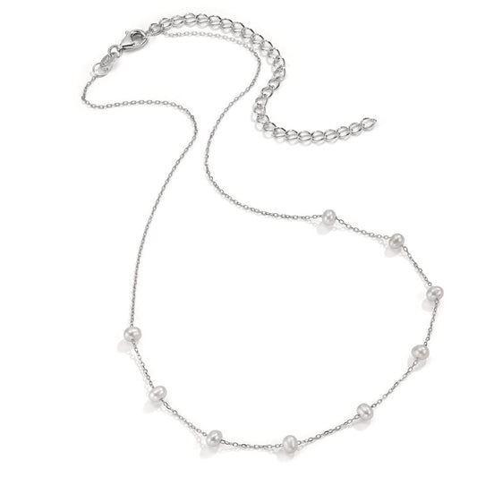Collier Silber Zirkonia rhodiniert Süsswasserzuchtperle, 9 Perlen, 3 mm 34-42 cm verstellbar