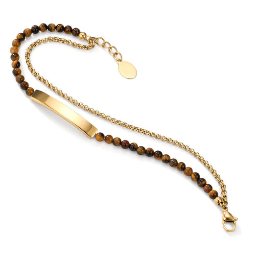 Gravurarmband Edelstahl Tigerauge gelb IP beschichtet 18 cm Ø4 mm