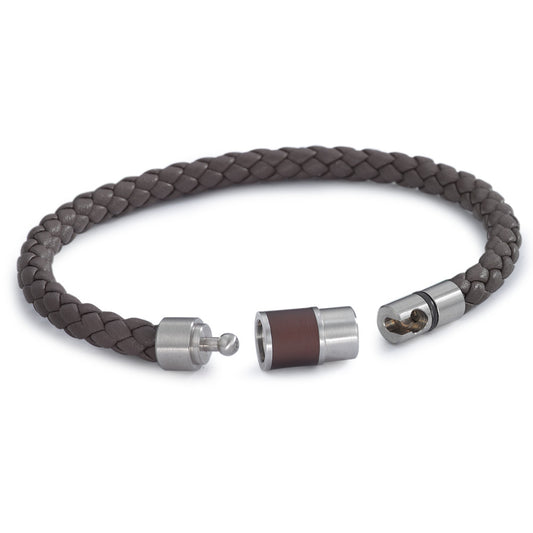 Armband DYKON aus braunem Leder mit Edelstahl-Keramikschliesse und Safe Lock System 19 cm