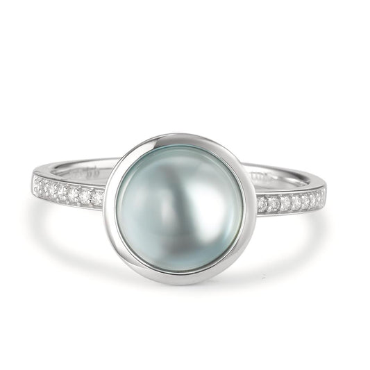 Fingerring 375/9 K Weissgold Diamant 0.05 ct, 15 Steine, Brillantschliff, w-si, Topas Ø9.5 mm