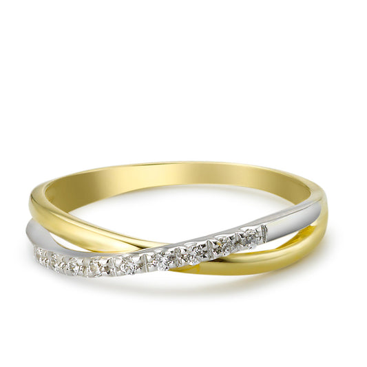 Fingerring 750/18 K Gelbgold, 750/18 K Weissgold Zirkonia 9 Steine