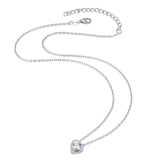 Collier Silber Zirkonia rhodiniert Herz 40-45 cm verstellbar Ø8 mm