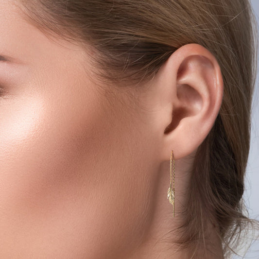 Durchziehohrhänger Bronze gelb vergoldet Feder
