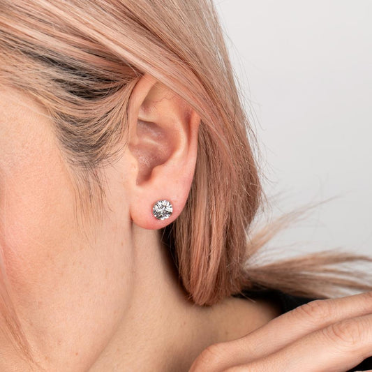 Ohrstecker Silber Zirkonia 2 Steine, rund, 8 mm