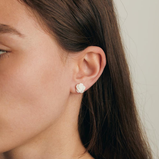 Ohrstecker Silber rhodiniert Perlmutt weiss Rose Ø11 mm