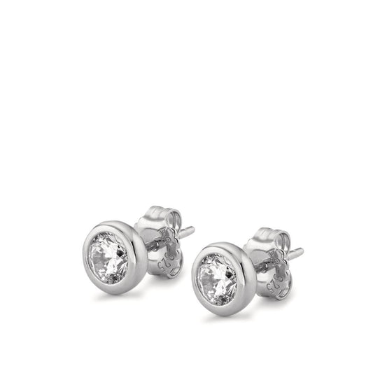 Ohrstecker Silber Zirkonia 2 Steine rhodiniert Ø7 mm