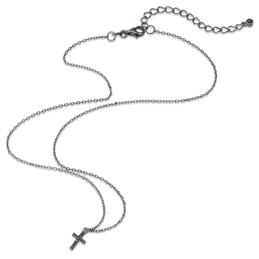 Collier Silber Zirkonia schwarz rhodiniert Kreuz 36-41 cm verstellbar