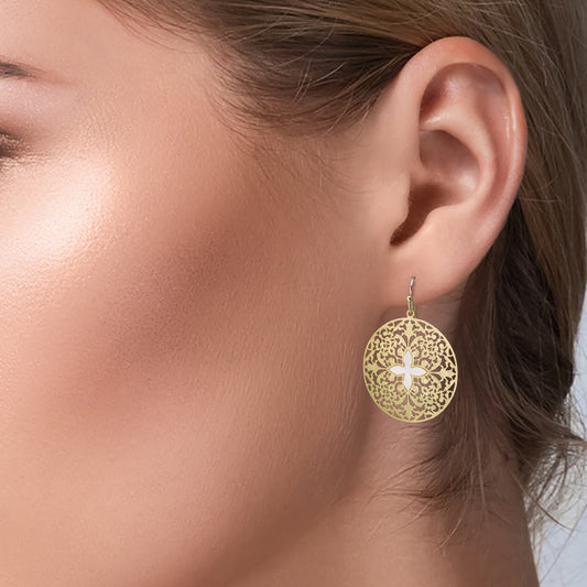 Ohrhänger Bronze Perlmutt weiss Ø30 mm
