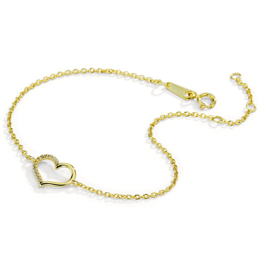 Armband Silber Zirkonia gelb vergoldet Herz 16-18 cm verstellbar