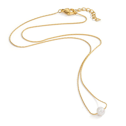 Collier Edelstahl gelb IP beschichtet Süsswasserzuchtperle, 5.5 mm 42-45 cm verstellbar