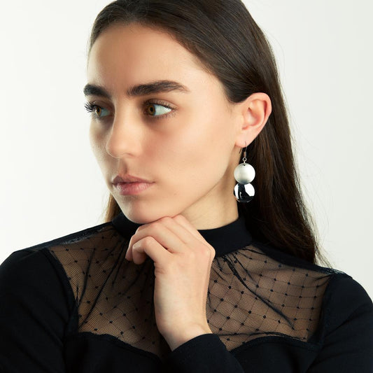 Ohrhänger Silber rhodiniert Muschelperle weiss, 2 Perlen, 8 mm
