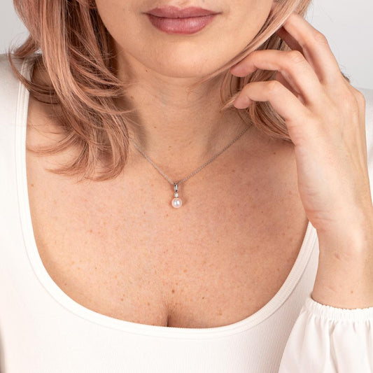 Anhänger 750/18 K Weissgold Diamant 0.07 ct, w-si Süsswasserzuchtperle weiss 7.5-8 mm