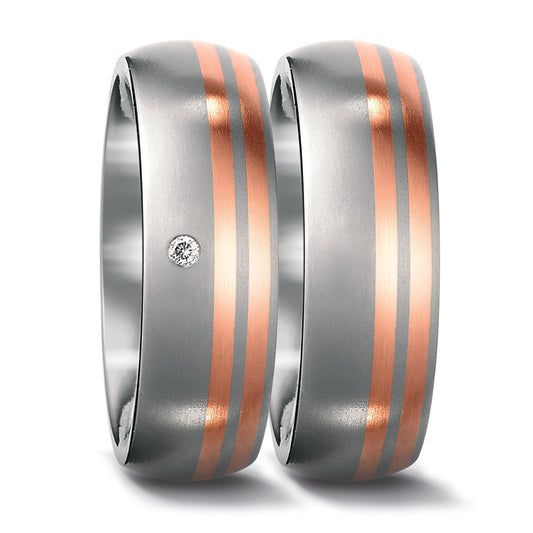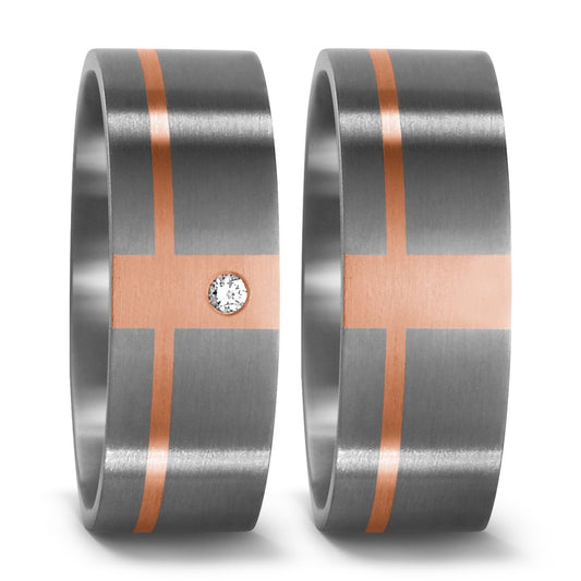 Partnerring Titan, 750/18 K Rotgold Diamant 0.05 ct, w-si