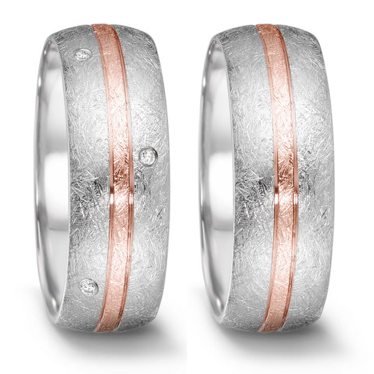 Partnerring Edelstahl, 750/18 K Rosegold Diamant 0.04 ct, tw-si