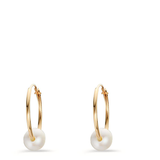 Klappcreolen 585/14 K Gelbgold Süsswasserzuchtperle, 2 Perlen 5-5.5 mm