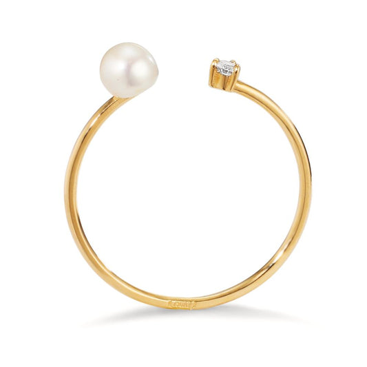 Fingerring 750/18 K Gelbgold Diamant 0.03 ct, w-si Süsswasserzuchtperle weiss, 4 mm