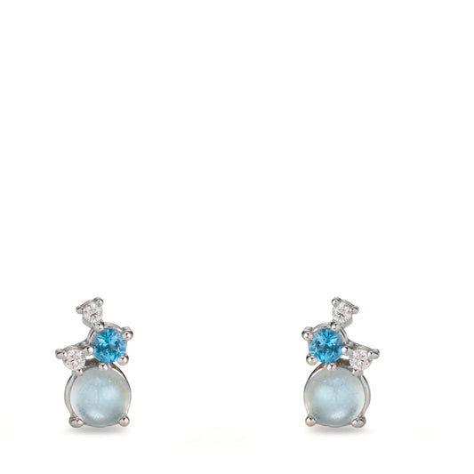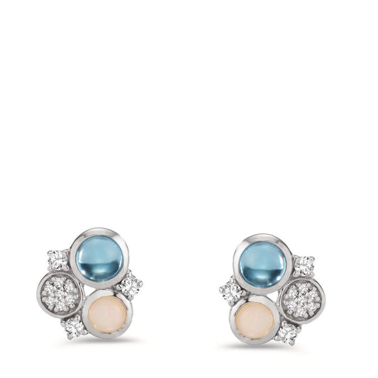 Ohrstecker Silber Zirkonia 18 Steine, Topas blau, 2 Steine, Opal 2 Steine rhodiniert Ø12 mm