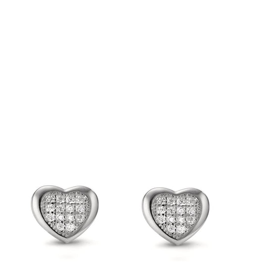 Ohrstecker Silber Zirkonia 28 Steine rhodiniert Herz Ø7.5 mm
