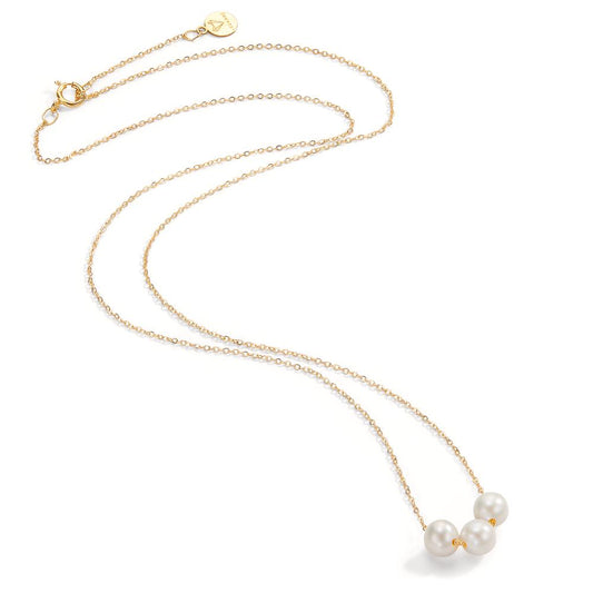 Collier 750/18 K Gelbgold Süsswasserzuchtperle weiss, 3 Perlen, 5 mm 40-42 cm verstellbar