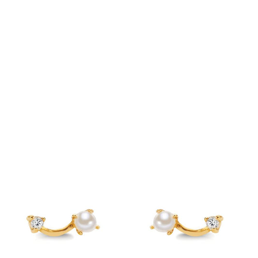 Ohrstecker 750/18 K Gelbgold Diamant 0.02 ct, 2 Steine, w-si Süsswasserzuchtperle weiss, 2 Perlen, 2 mm
