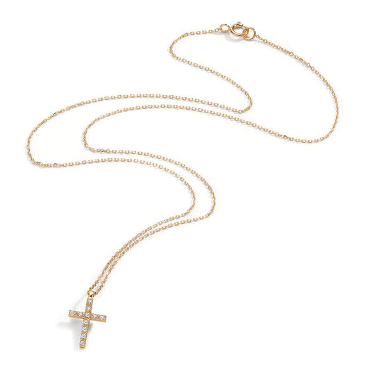 Collier 750/18 K Gelbgold Diamant 0.06 ct, 11 Steine, w-si Kreuz 42 cm