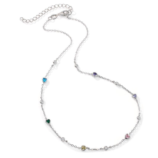 Collier Silber Zirkonia bunt, 13 Steine rhodiniert Herz 34-39 cm verstellbar
