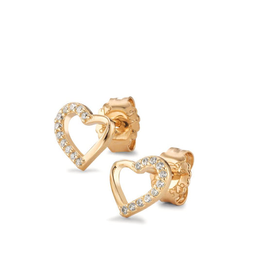 Ohrstecker Silber Zirkonia 22 Steine gelb vergoldet Herz Ø7.5 mm