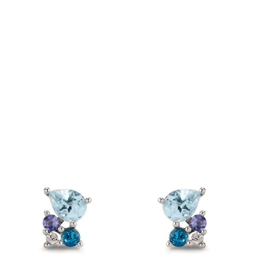 Ohrstecker Silber Zirkonia 2 Steine, Iolith 2 Steine, London Blue Topas 2 Steine, Topas blau rhodiniert
