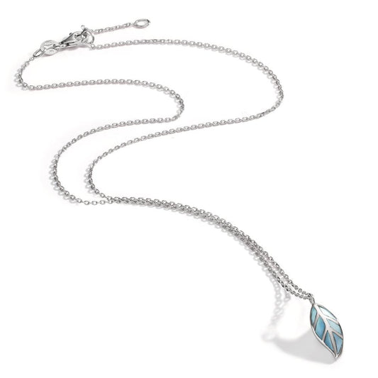 Collier Silber rhodiniert Perlmutt blau Blatt 40-42 cm verstellbar