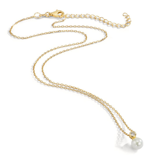Collier Silber Zirkonia gelb vergoldet shining Pearls, 6 mm 40-45 cm verstellbar