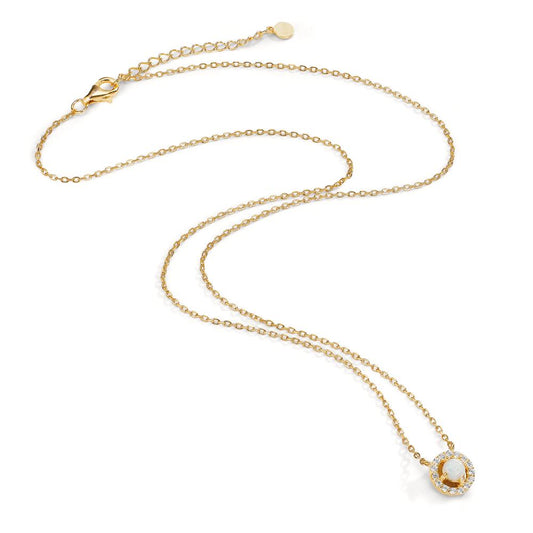 Collier Silber Zirkonia, synth. Opal gelb vergoldet 42-45 cm verstellbar