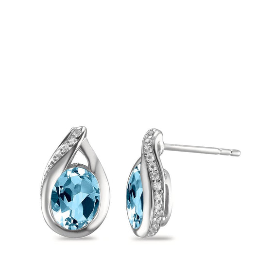 Elegantes Set aus rhodiniertem Silber mit blauen Topasen in Tropfenform