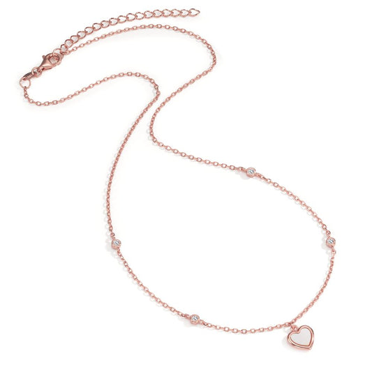 Collier Silber Zirkonia 4 Steine rosé vergoldet Perlmutt weiss Herz 40-45 cm verstellbar
