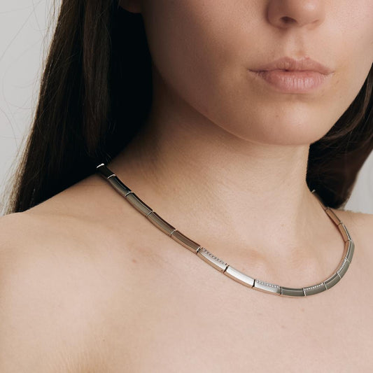 Collier Edelstahl Zirkonia IP beschichtet 45 cm Ø8.5 mm