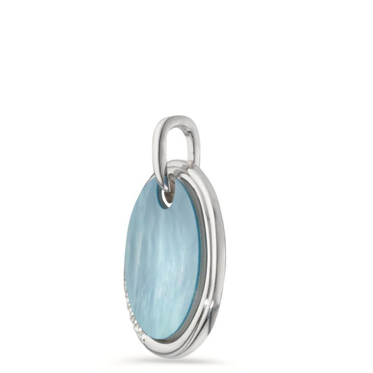 Anhänger Silber Zirkonia 6 Steine rhodiniert Perlmutt blau Ø20 mm