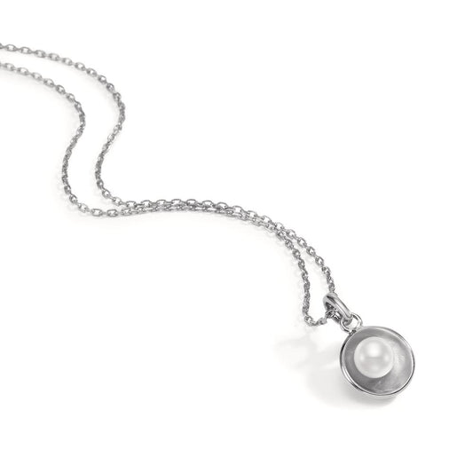 Halskette mit Anhänger Silber Zirkonia 25 Steine rhodiniert Süsswasserzuchtperle weiss, 5.5 mm Herz 40-42 cm verstellbar Ø10 mm