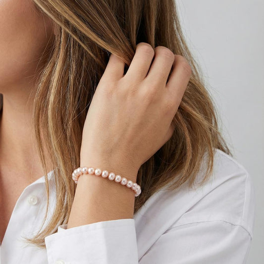 Armband Süsswasserzuchtperle rosa, 25 Perlen 7-7.5 mm 18.5 cm
