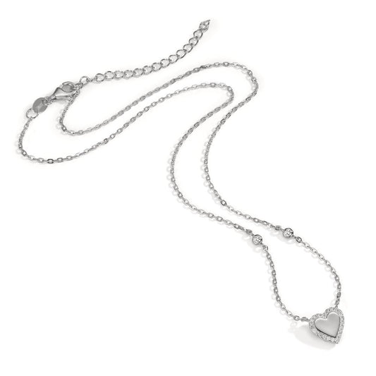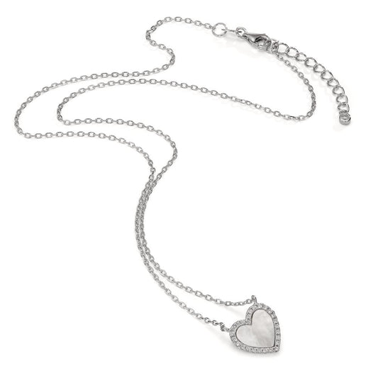 Collier Silber Zirkonia rhodiniert Perlmutt weiss Herz 42-45 cm verstellbar Ø12 mm