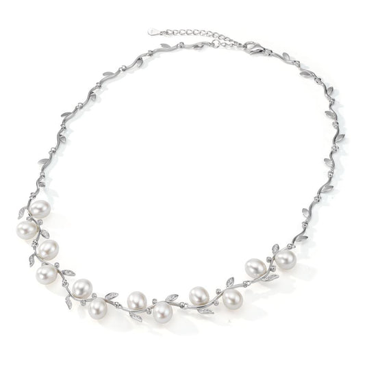 Collier Silber Zirkonia rhodiniert Süsswasserzuchtperle Oval, 12 Perlen 7-7.5 mm 40-45 cm verstellbar
