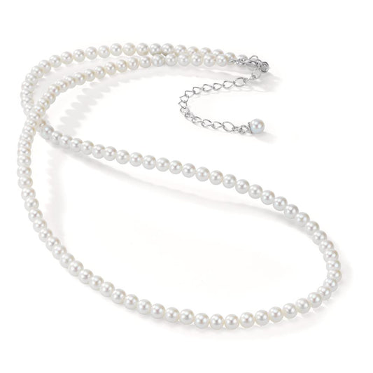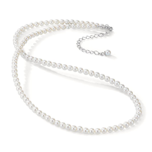 Collier Silber rhodiniert Süsswasserzuchtperlen Rund 3.5-4 mm 40-45 cm verstellbar