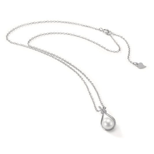 Collier Silber Zirkonia 4 Steine rhodiniert Süsswasserzuchtperle Bouton 7-7.5 mm 38-42 cm verstellbar
