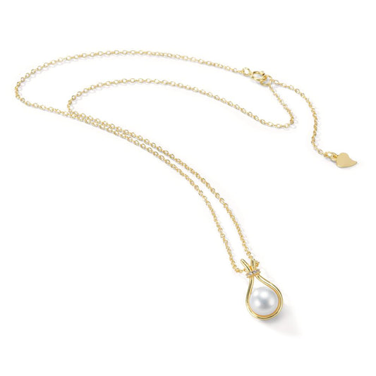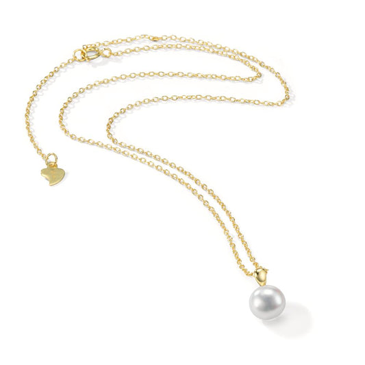 Collier Silber gelb vergoldet Süsswasserzuchtperle Bouton 7-7.5 mm 38-42 cm verstellbar